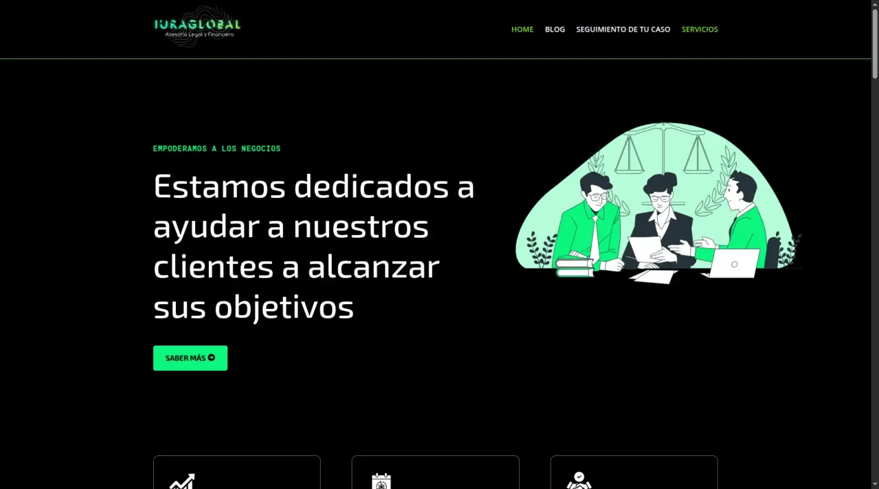 Luraglobal es un sitio web informativo y de servicios para una consultora legal y financiera, diseñado para presentar sus diversas áreas de especialización, generar confianza y facilitar el contacto con clientes potenciales.