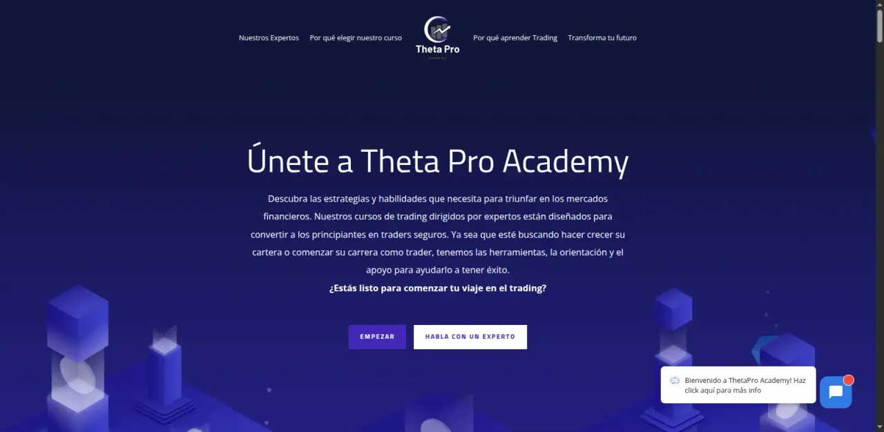 The Theta Pro Academy es un proyecto web integral que desarrollamos en ara un cliente en el sector de la formación financiera. Esta landing page está diseñada estratégicamente para la captación de leads y la conversión, ofreciendo una experiencia de usuario clara y profesional. Implementamos un diseño atractivo y funcional, optimizado para comunicar eficazmente el valor de sus cursos de trading a su público objetivo. Este proyecto demuestra nuestra capacidad para crear soluciones web completas y orientadas a resultados para negocios establecidos.